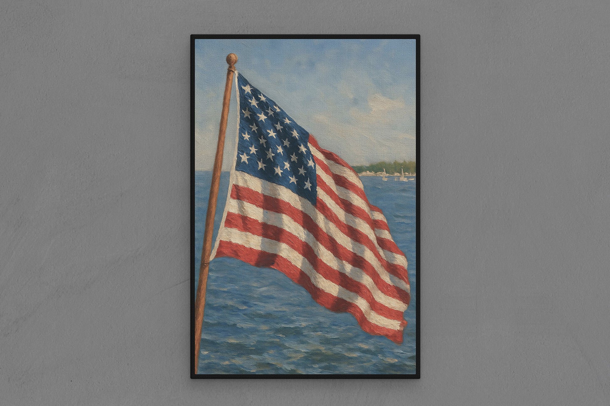 Canvas Frame with "Flag over Water" Image