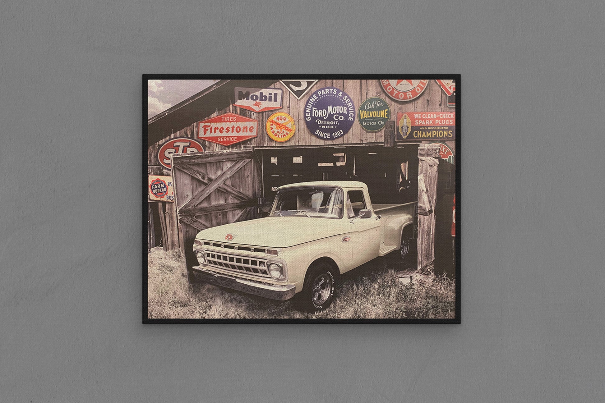 Round Canvas Frame with "Ford Truck with Signs" Image