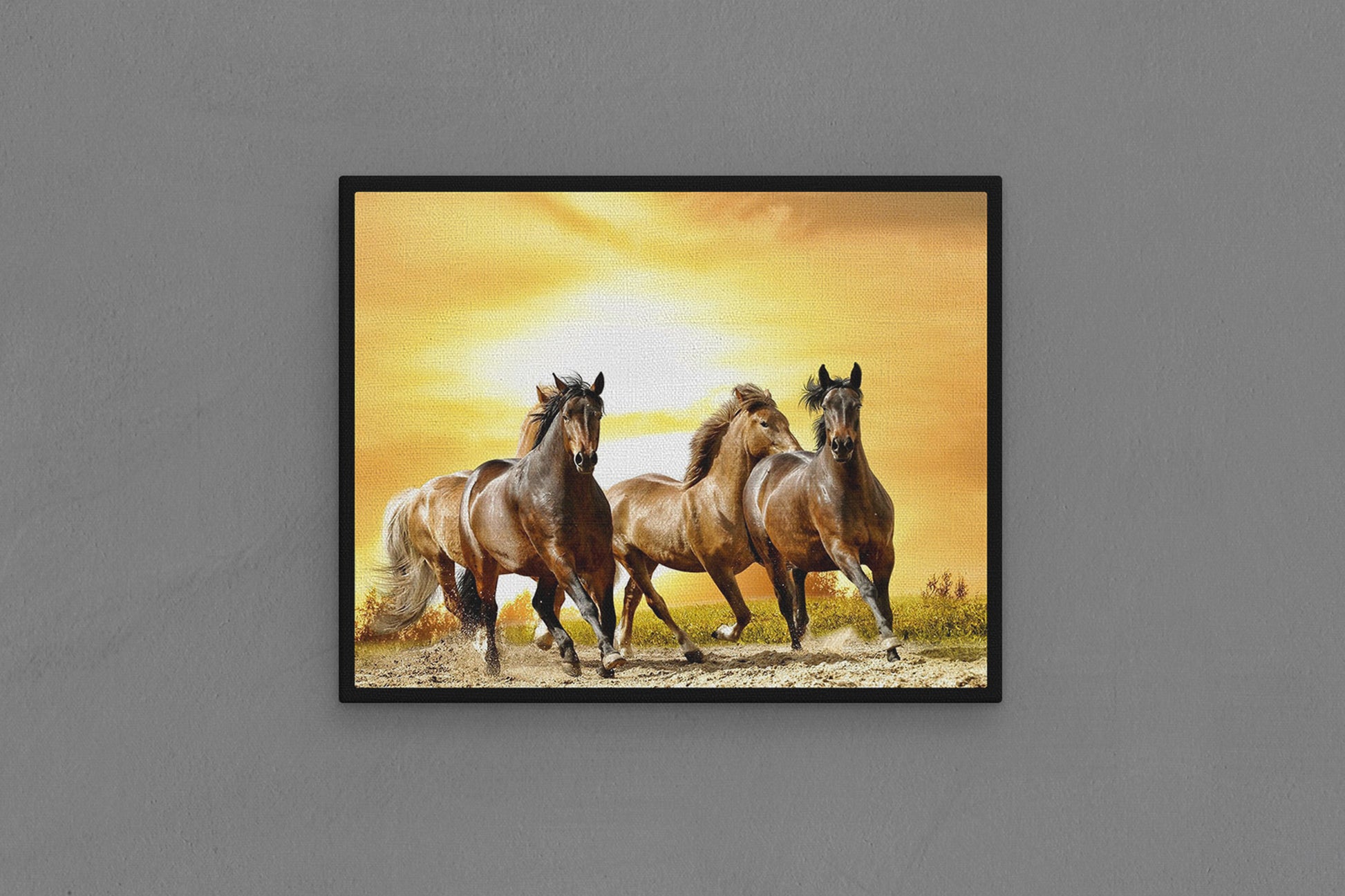 Canvas Frame with "Horses - Running in the Sun 01" Image