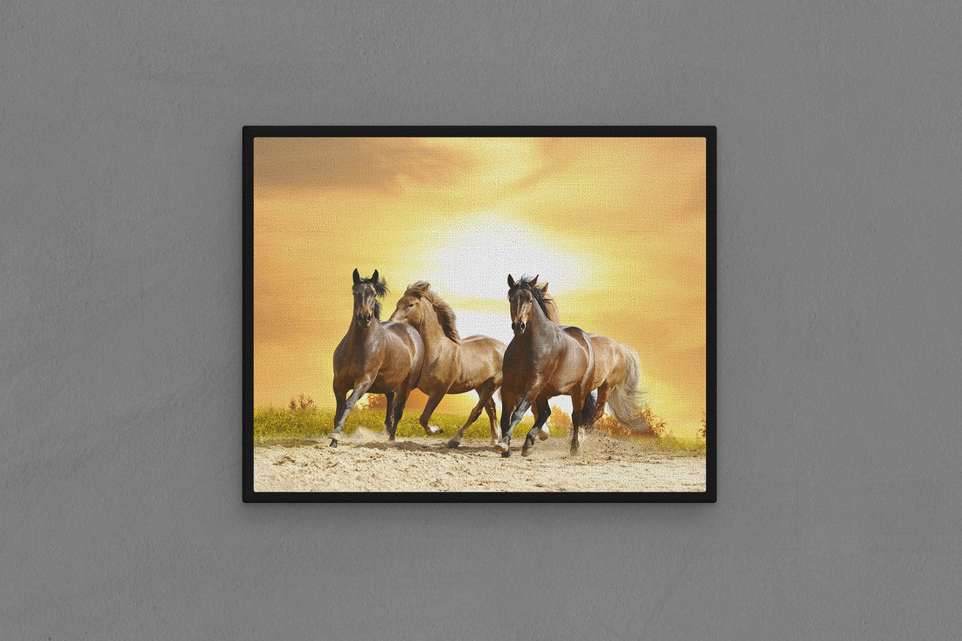 Canvas Frame with "Horses - Running in the Sun 01" Image