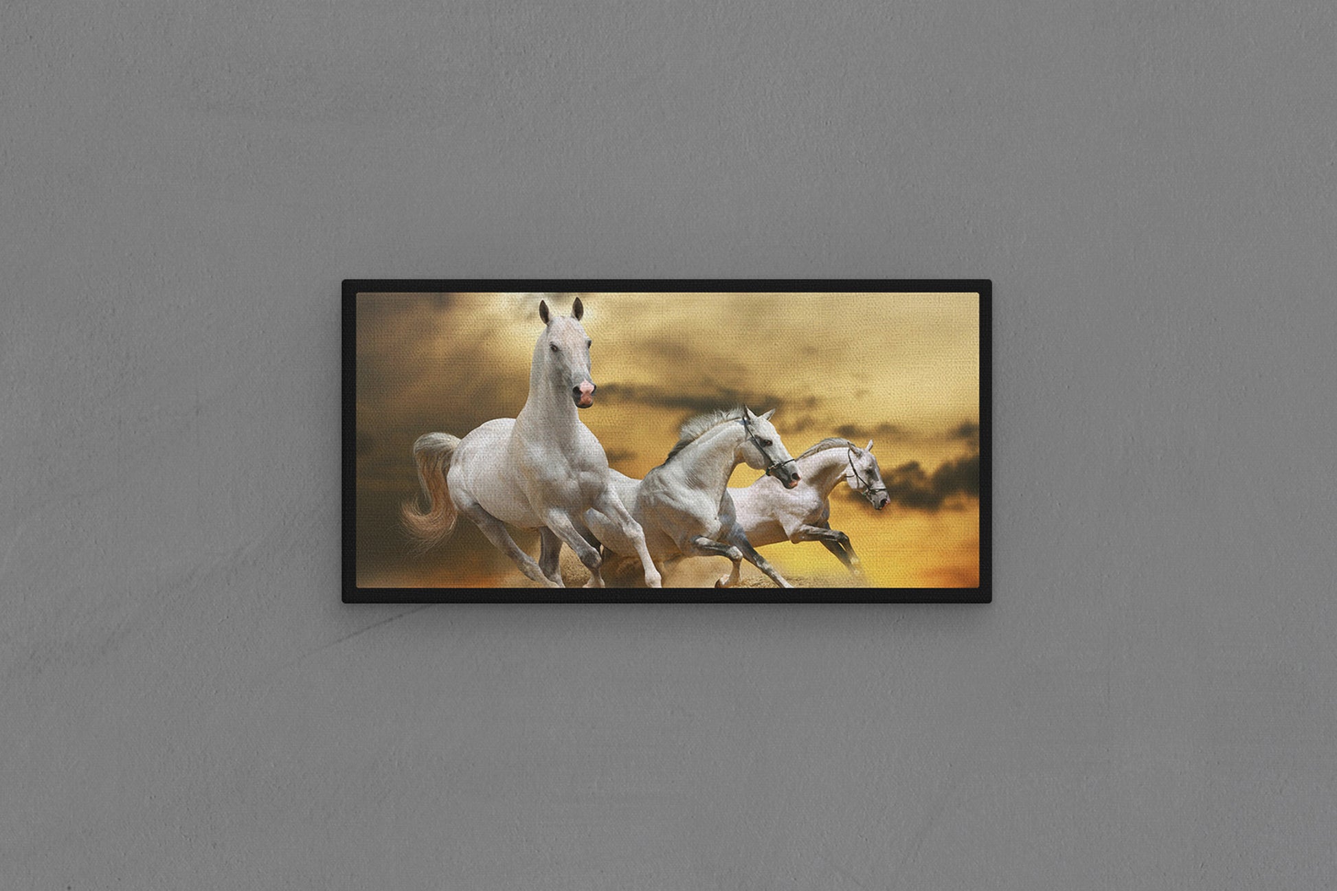 Canvas Frame with "Horses - White Horses Running" Image