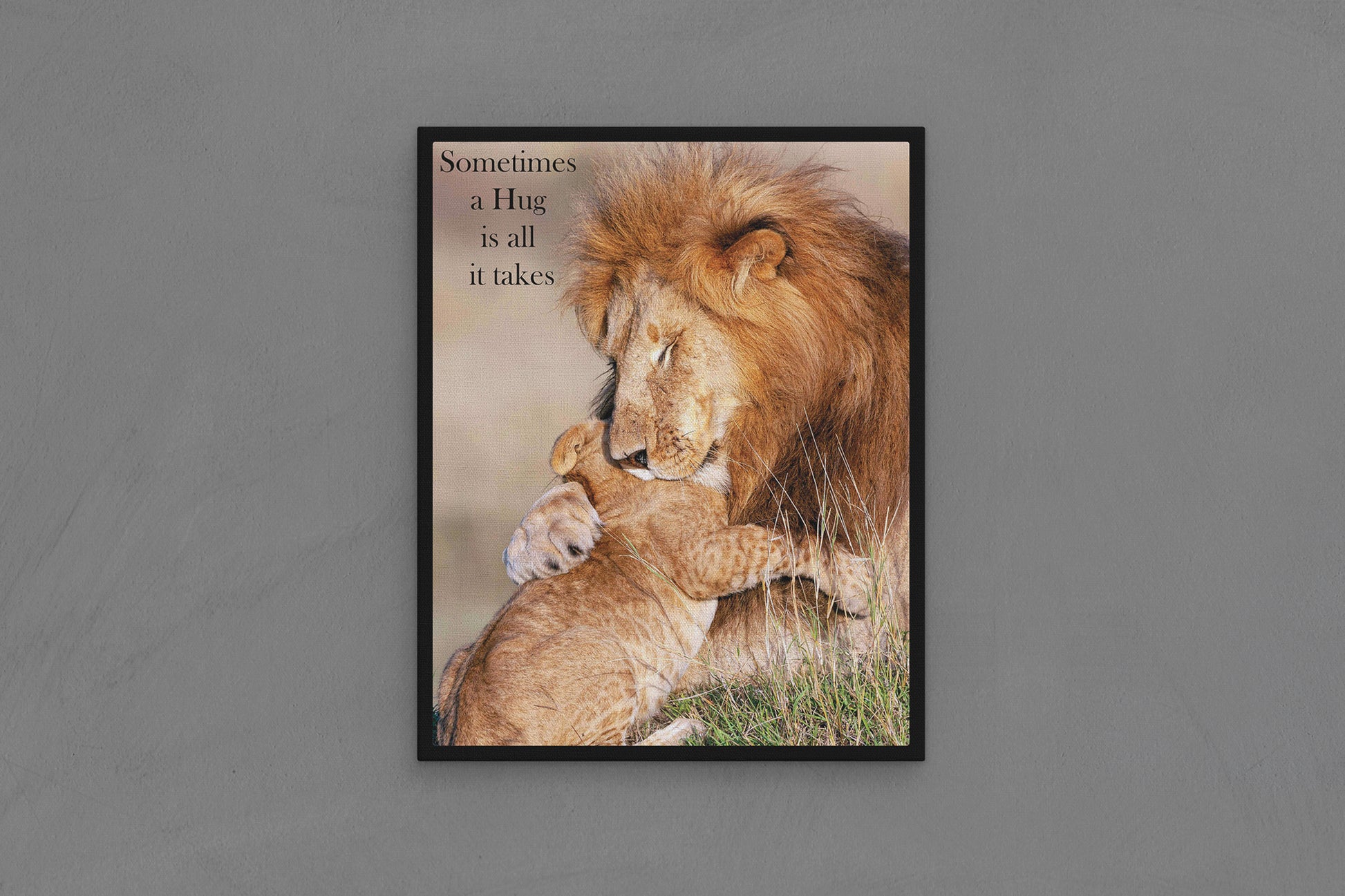 Canvas Frame with "Lions - Sometimes a Hug is all it takes" Image