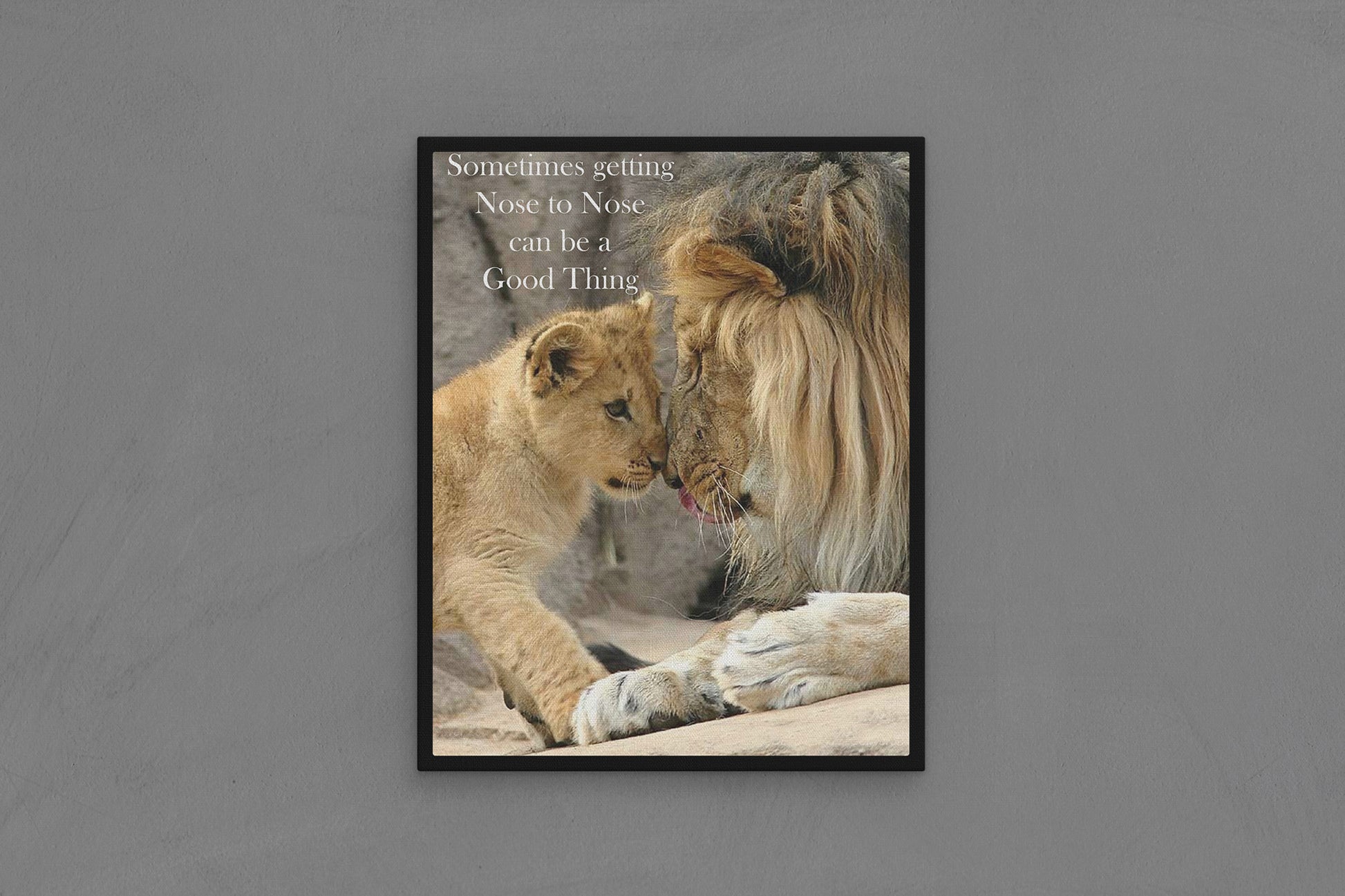 Canvas Frame with "Lions - Sometimes getting Nose to Nose can be a Good Thing" Image