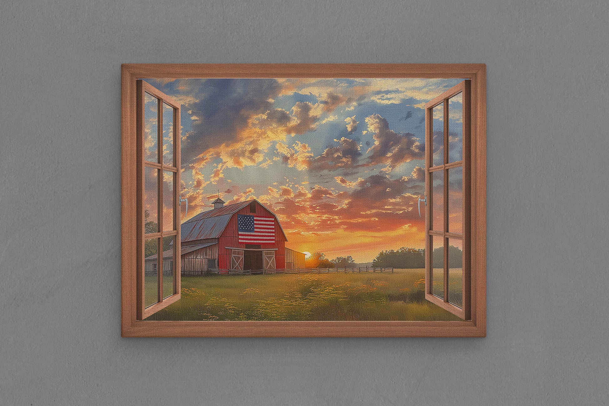 Canvas Frame with "Old Barn with Painted Window Frame" 02 Image