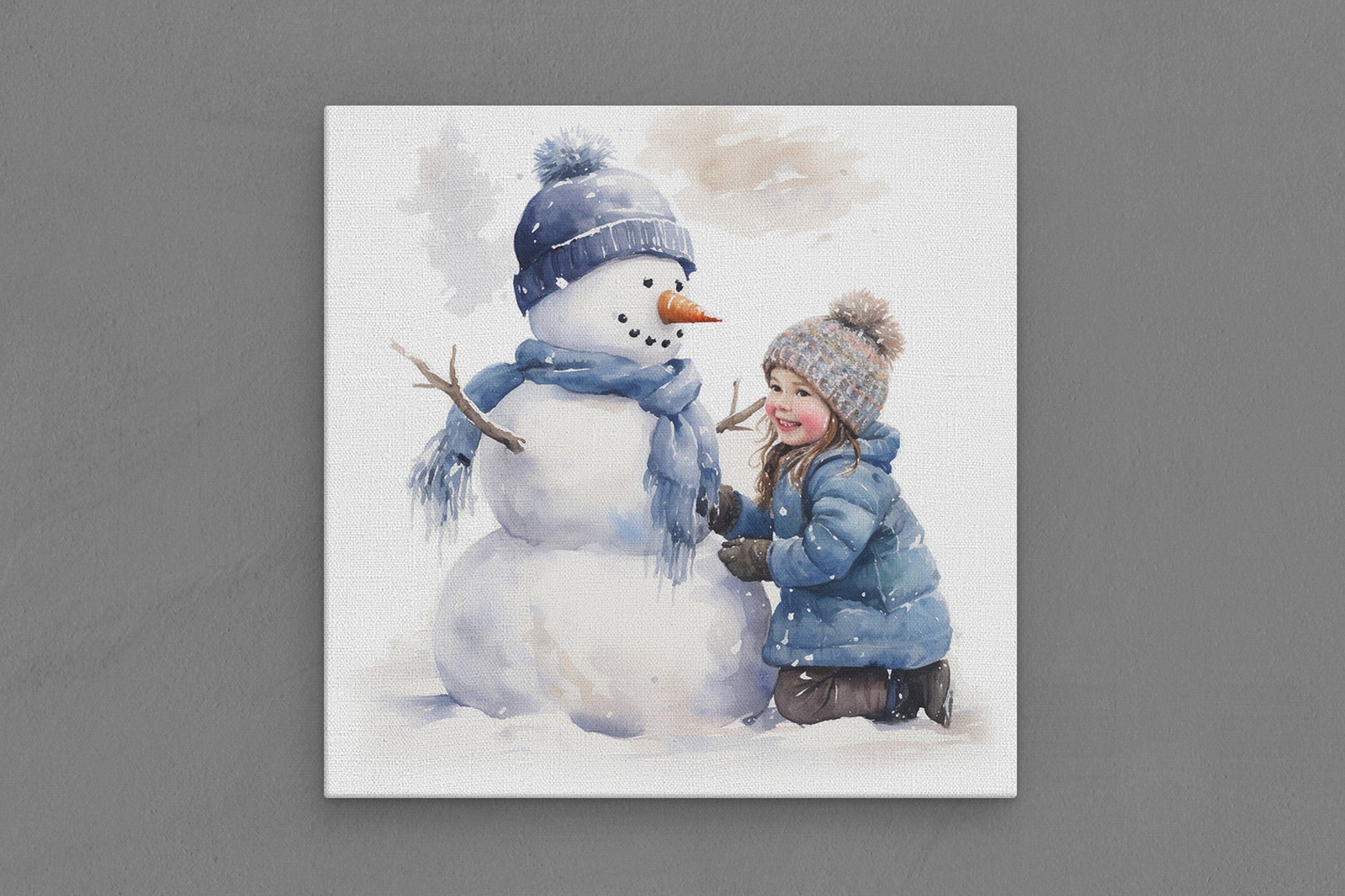 Canvas Frame with "Snowman and Girl" Image