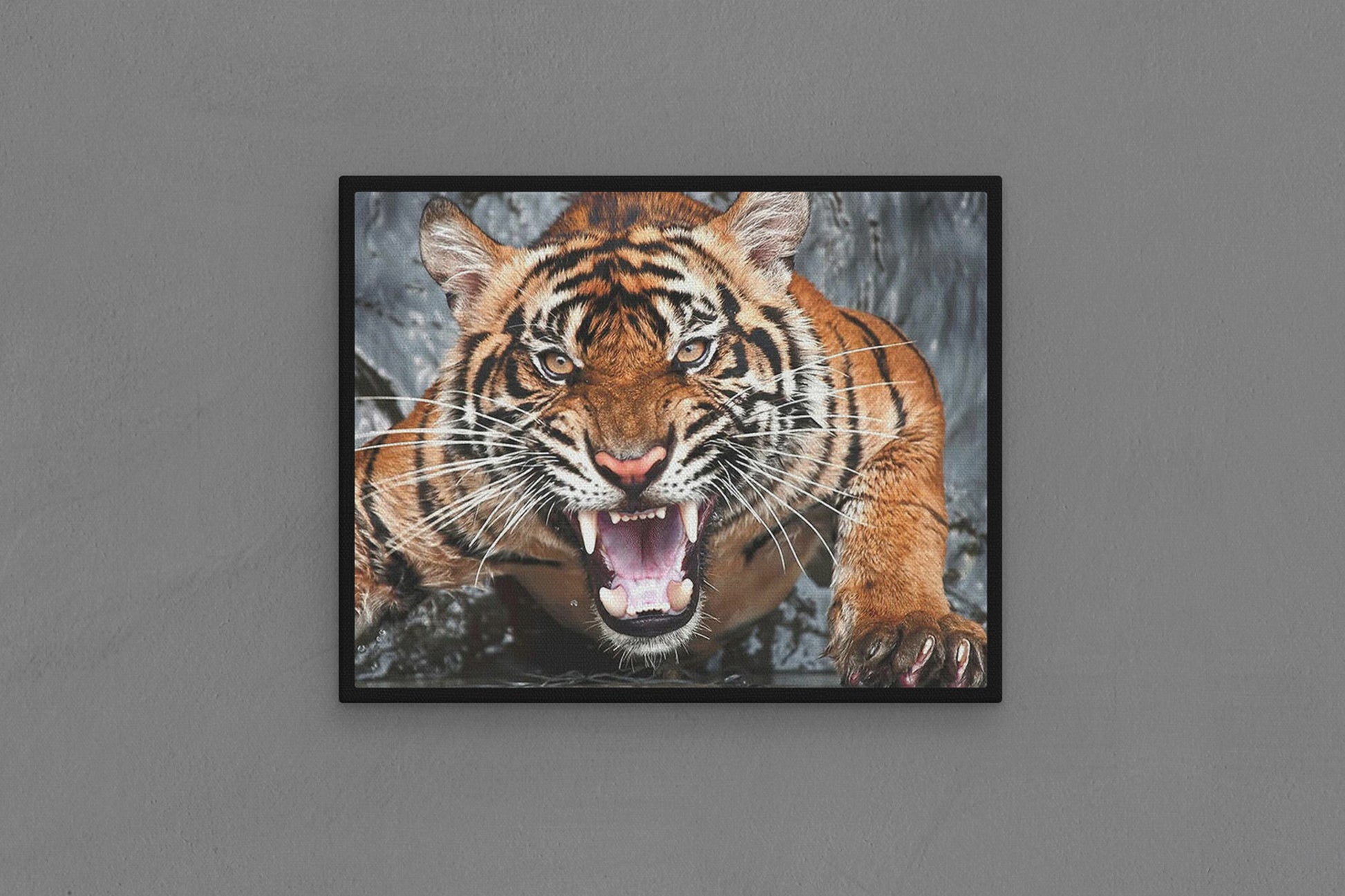 Canvas Frame with "Tiger - Growling Showing Teeth" Image
