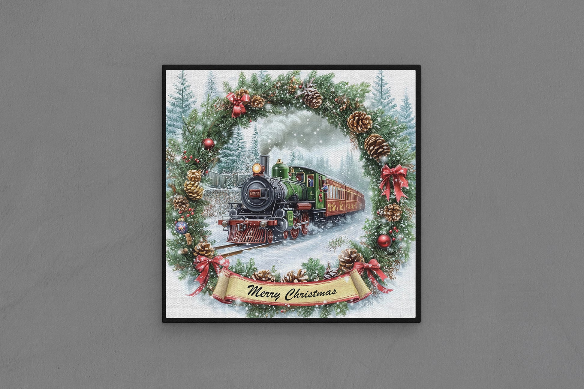 Canvas Frame with "Train with Merry Christmas Text" 01 Image