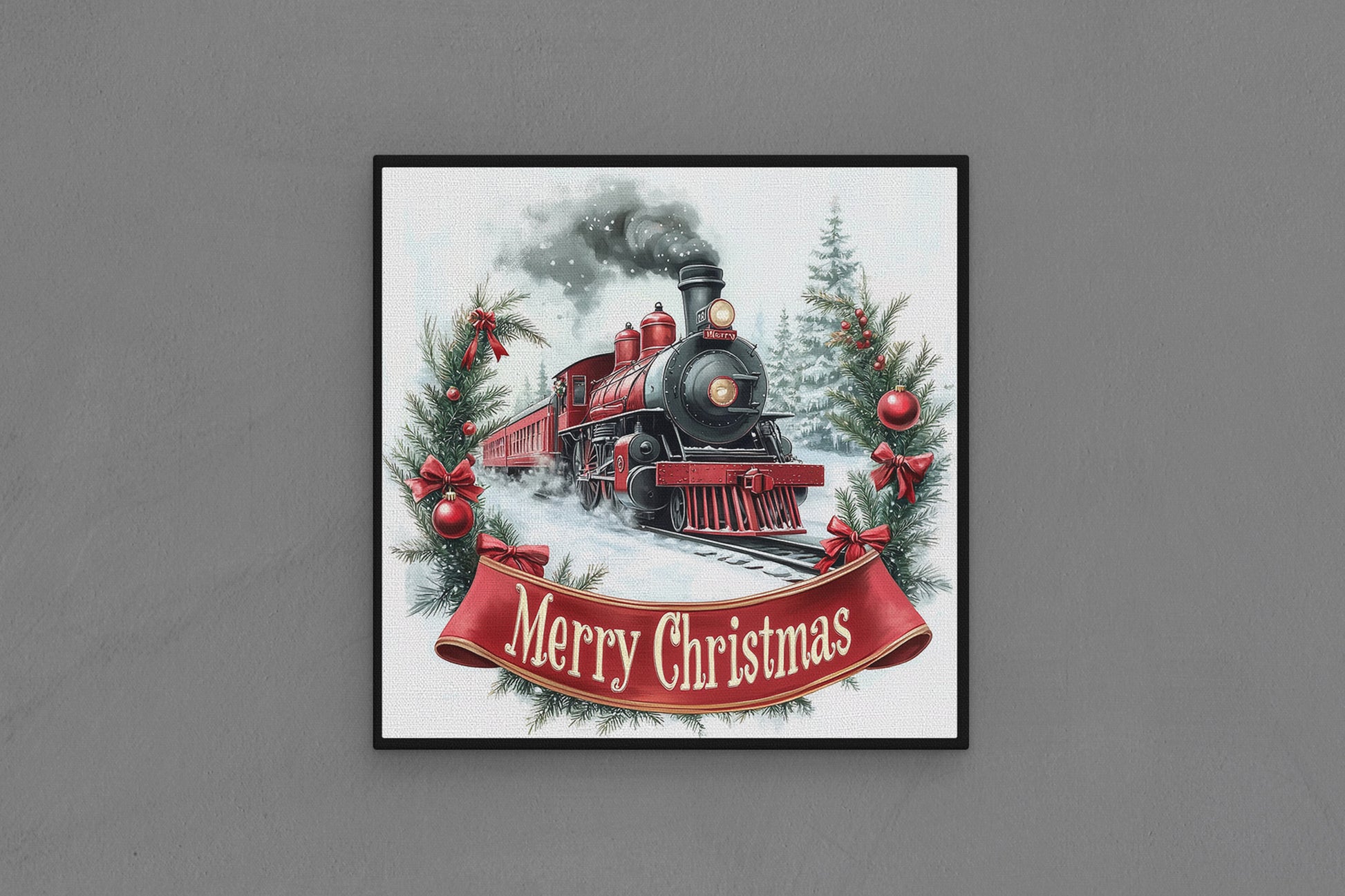 Canvas Frame with "Train with Merry Christmas Text" 03 Image