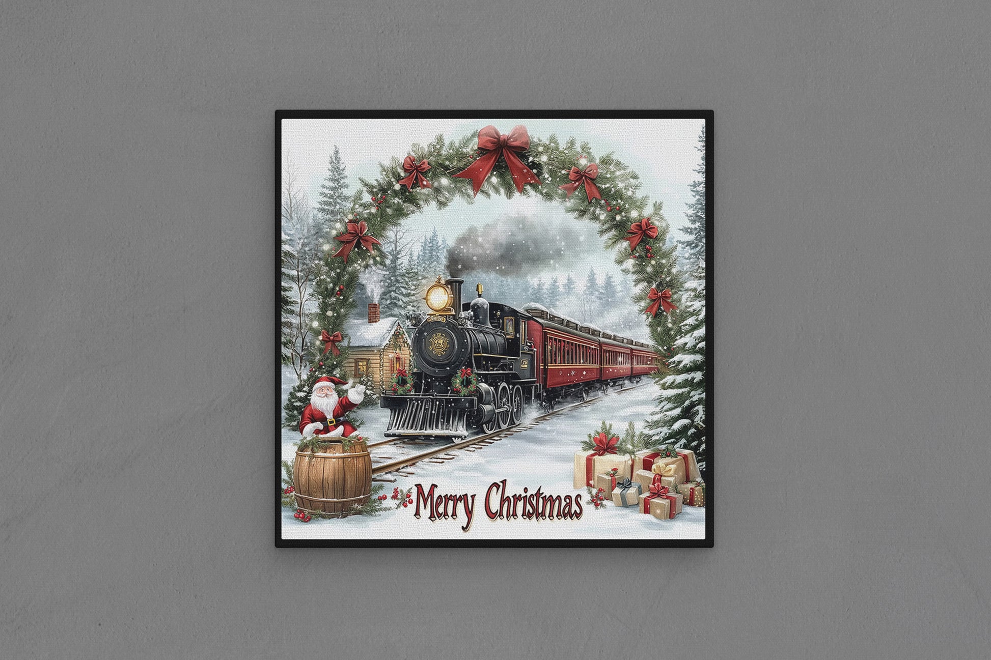 Canvas Frame with "Train with Merry Christmas Text" 08 Image