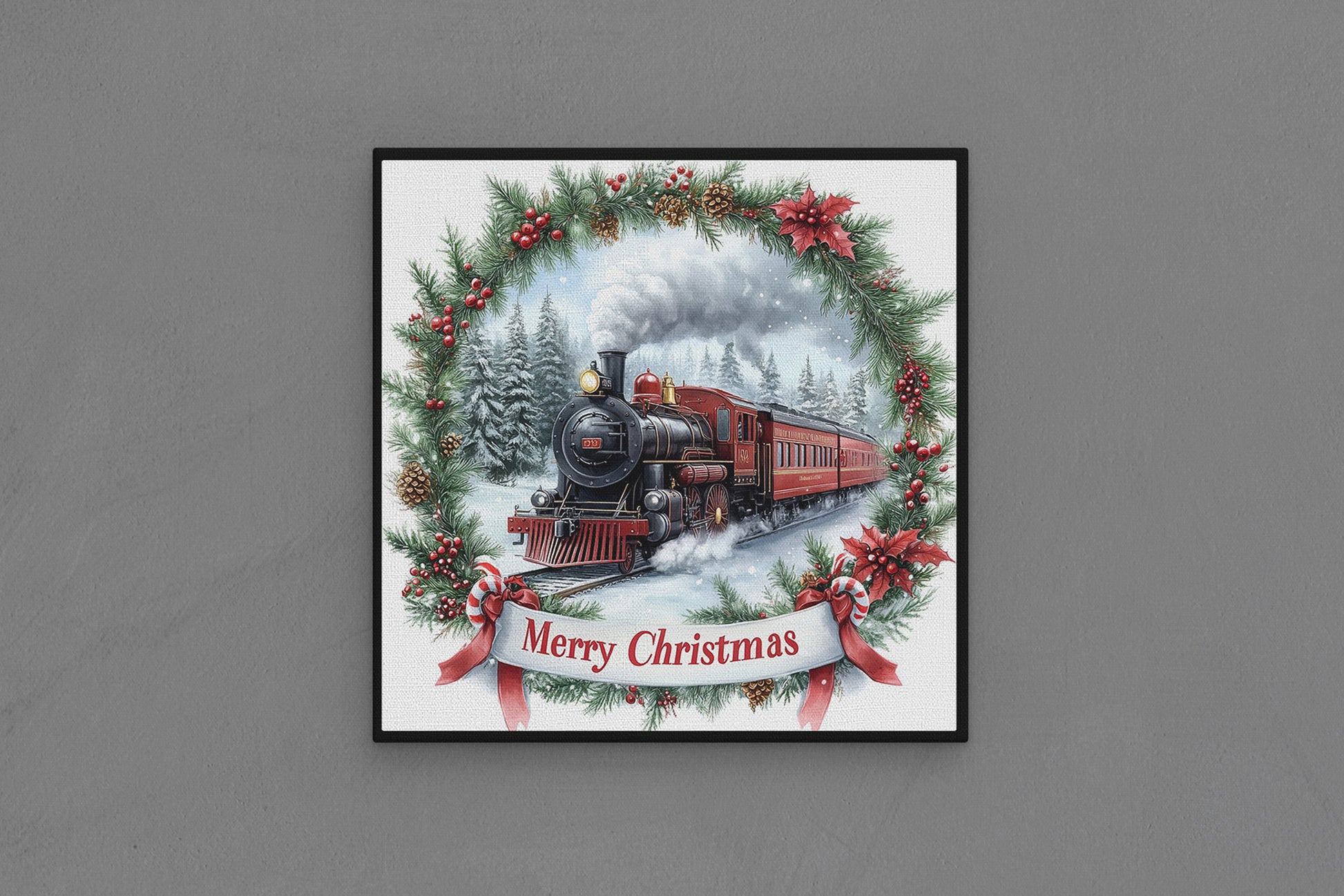 Canvas Frame with "Train with Merry Christmas Text" 11 Image