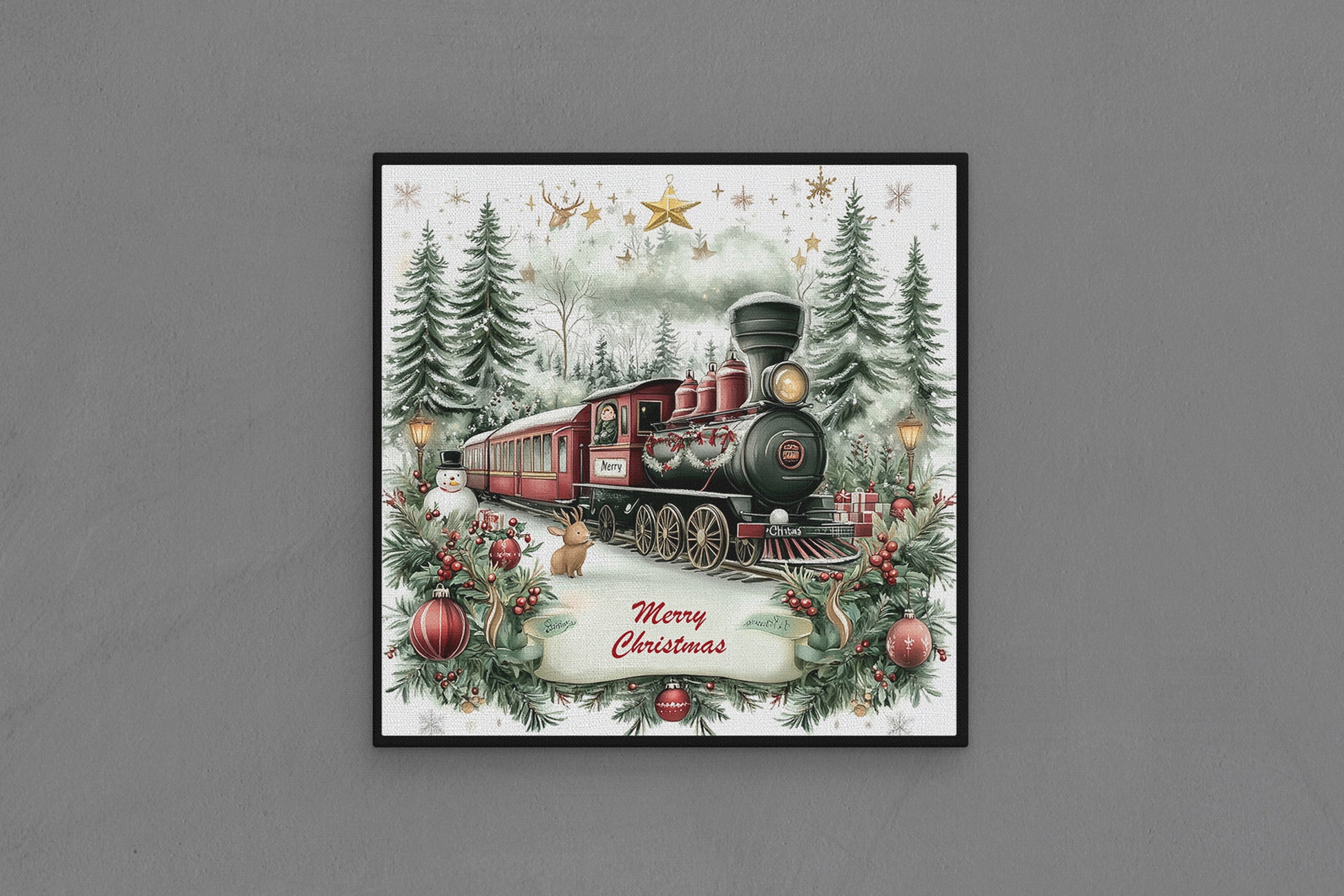Canvas Frame with "Train with Merry Christmas Text" 12 Image