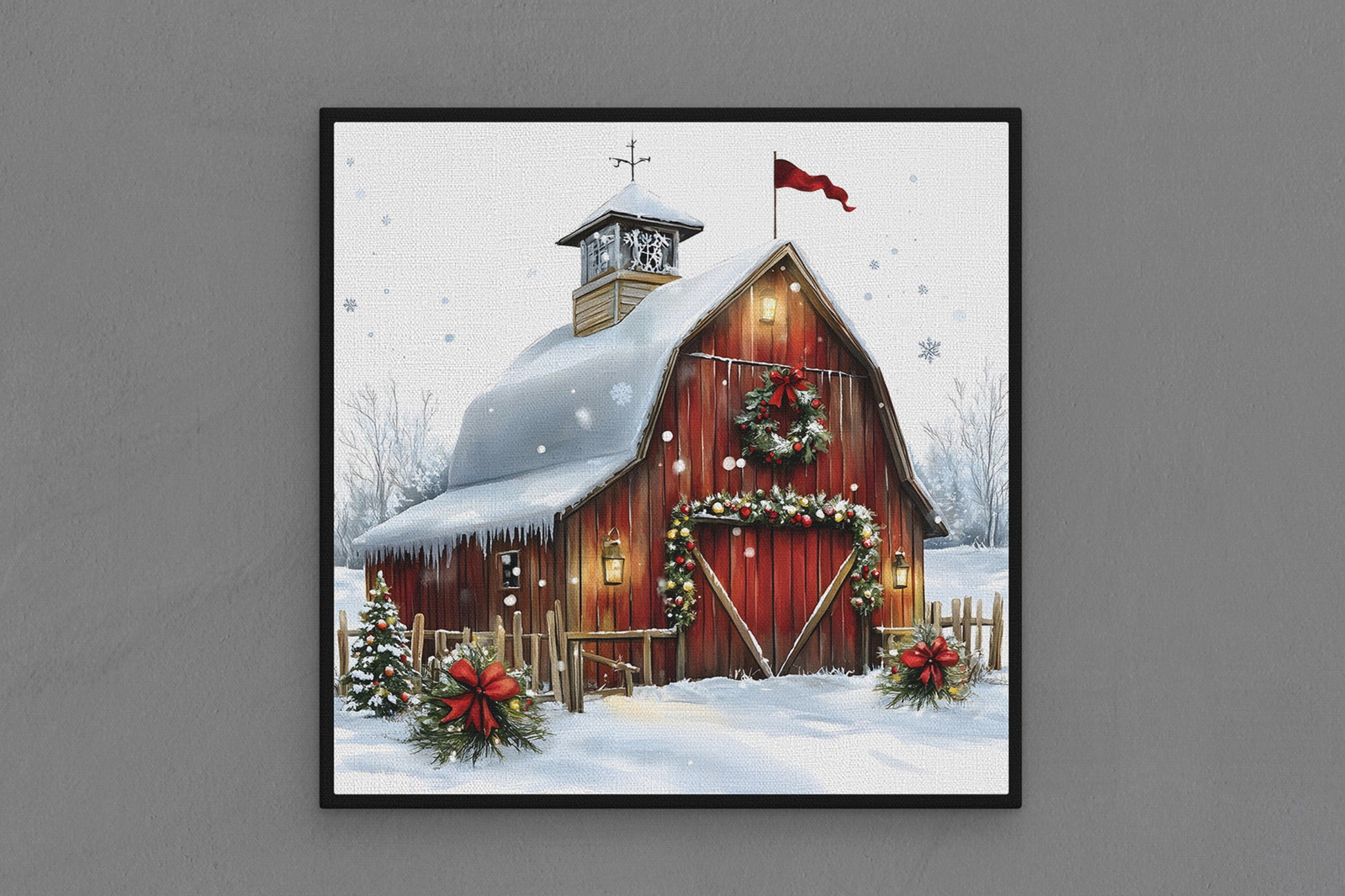 Canvas Frame with "Vintage Christmas Barn" 02 Image