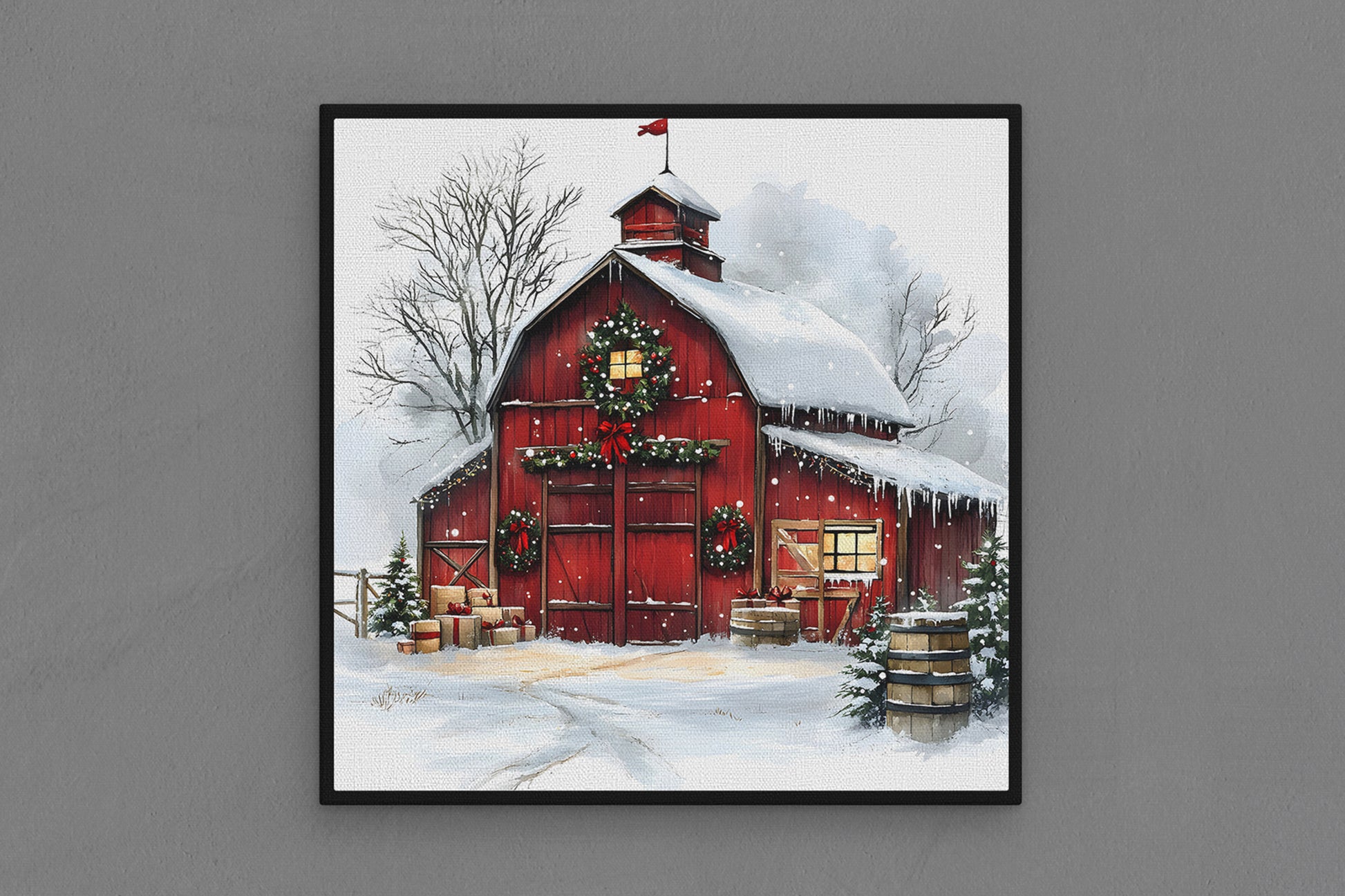Canvas Frame with "Vintage Christmas Barn" 03 Image
