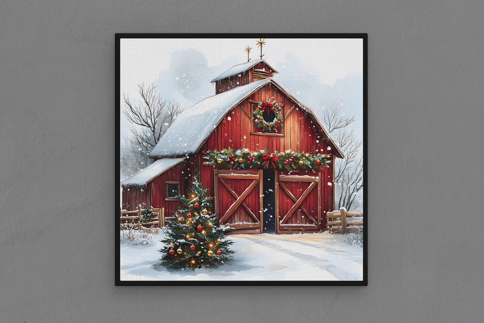 Canvas Frame with "Vintage Christmas Barn" 05 Image