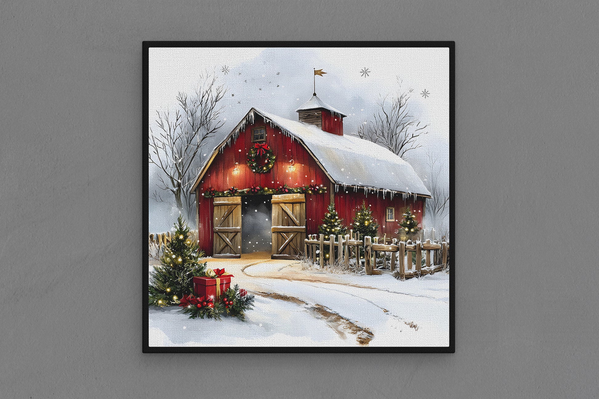 Canvas Frame with "Vintage Christmas Barn" 08 Image