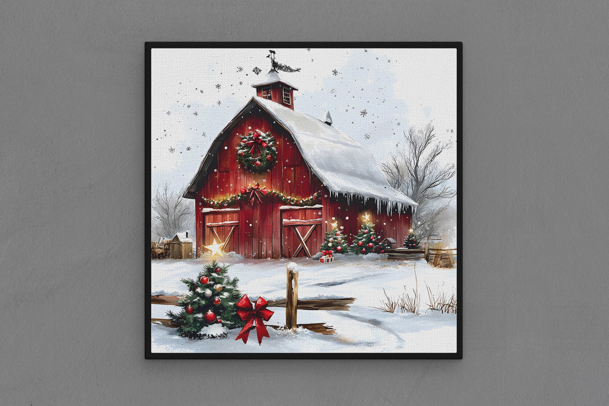 Canvas Frame with "Vintage Christmas Barn" 09 Image