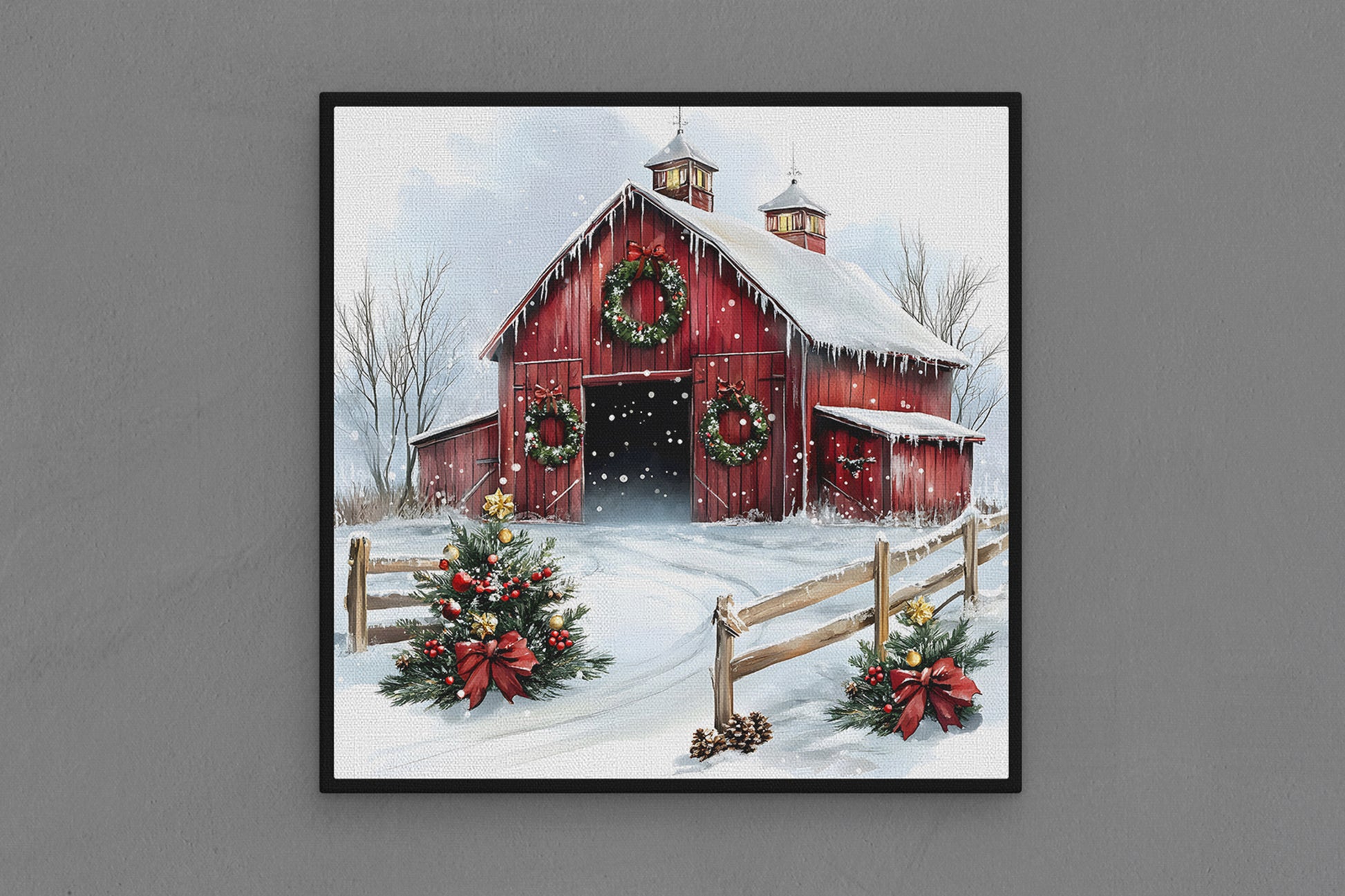 Canvas Frame with "Vintage Christmas Barn" 13 Image