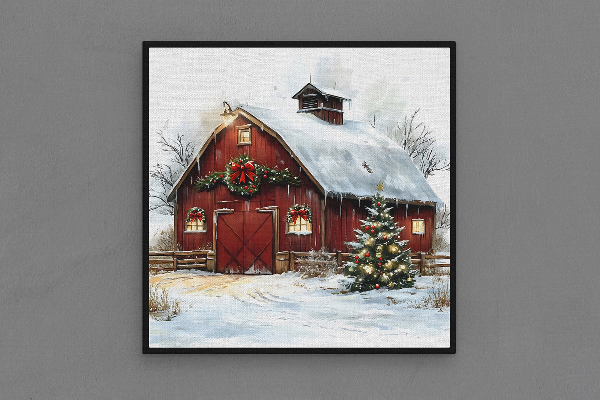 Canvas Frame with "Vintage Christmas Barn" 15 Image