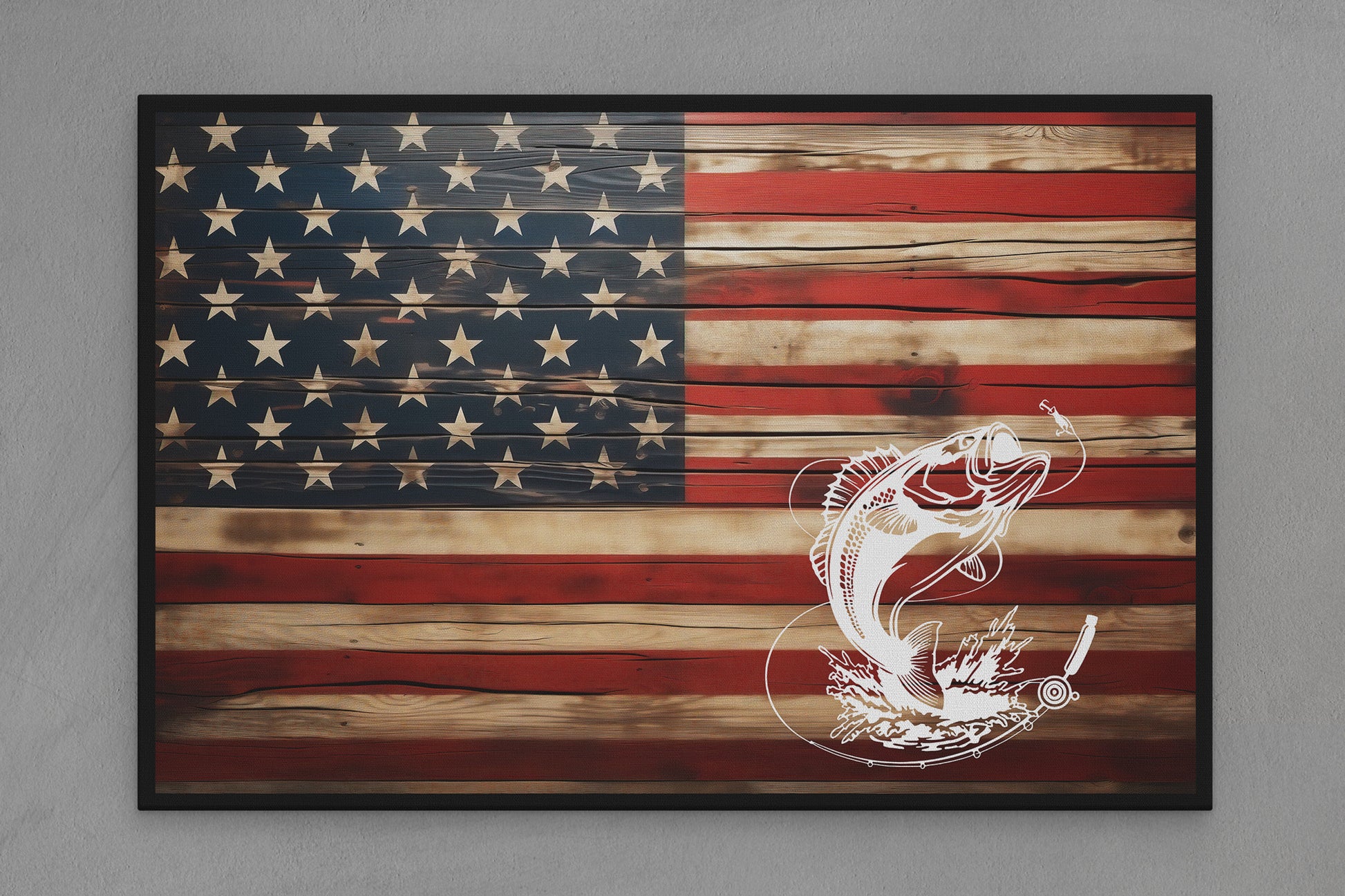 United States Canvas Flag with Fishing "Jump for Lure" Image