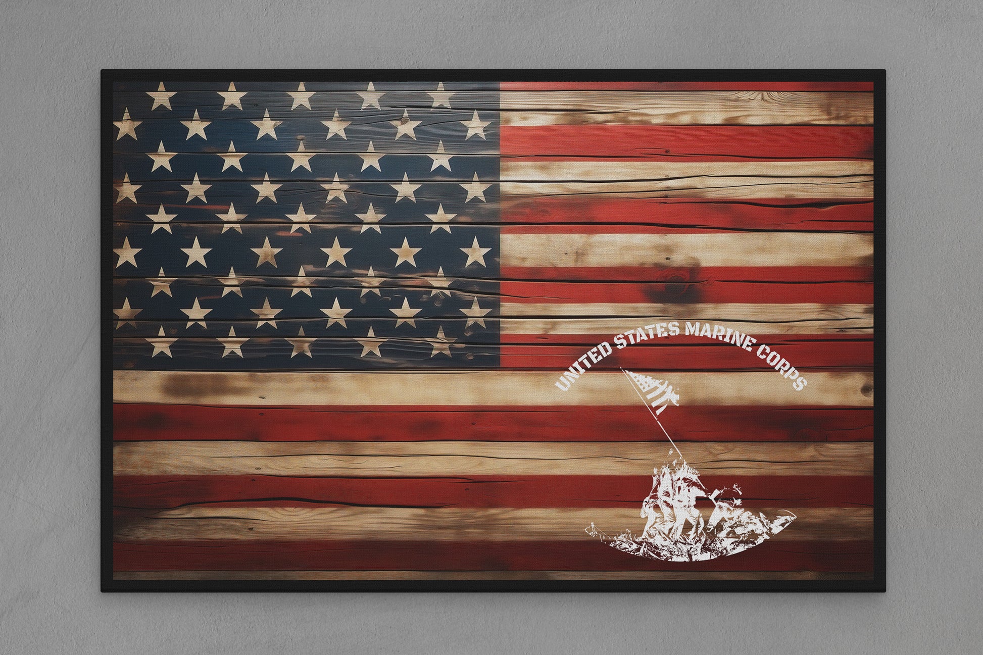 United States Canvas Flag with Marines "Iwo Jima" Image